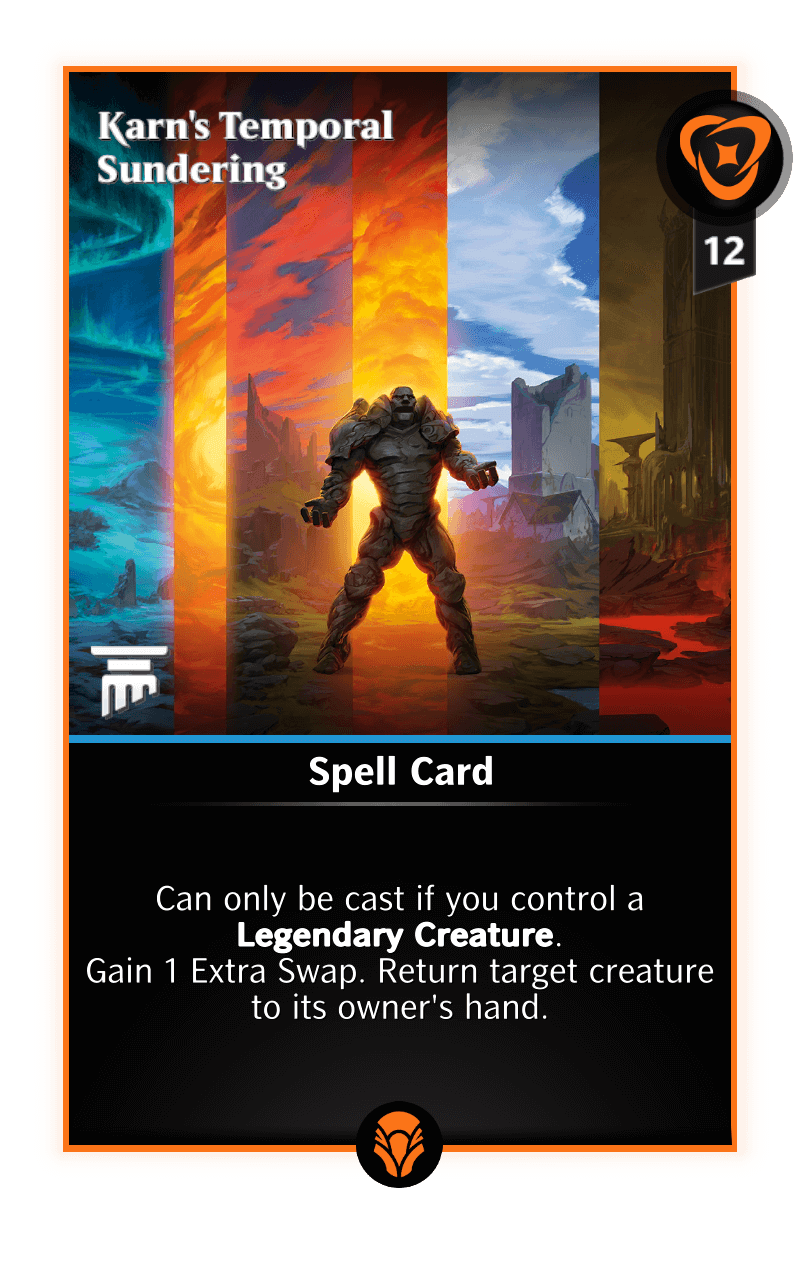 Can only be cast if you control a Legendary Creature. Gain 1 Extra Swap. Return target creature to its owner’s hand.