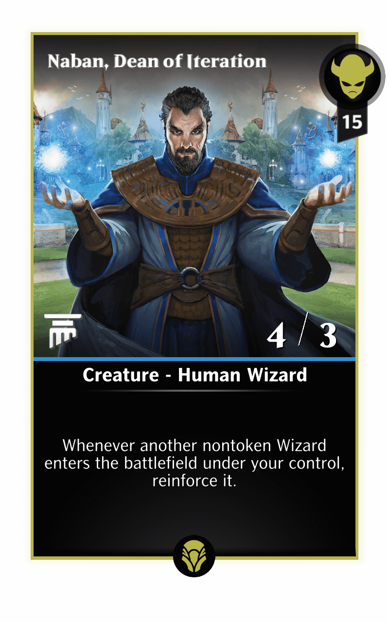 Whenever another nontoken Wizard enters the battlefield under your control, reinforce it.