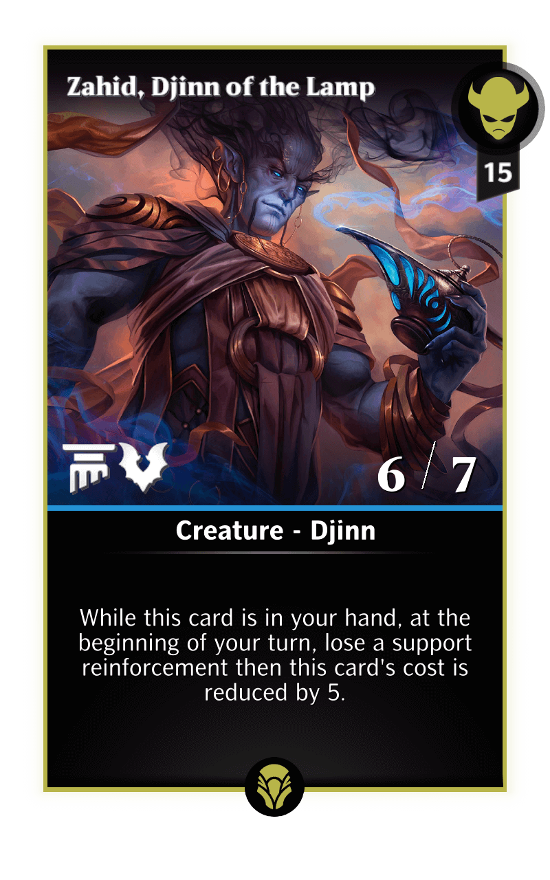 While this card is in your hand, at the beginning of your turn, lose a support reinforcement then this card’s cost is reduced by 5.
