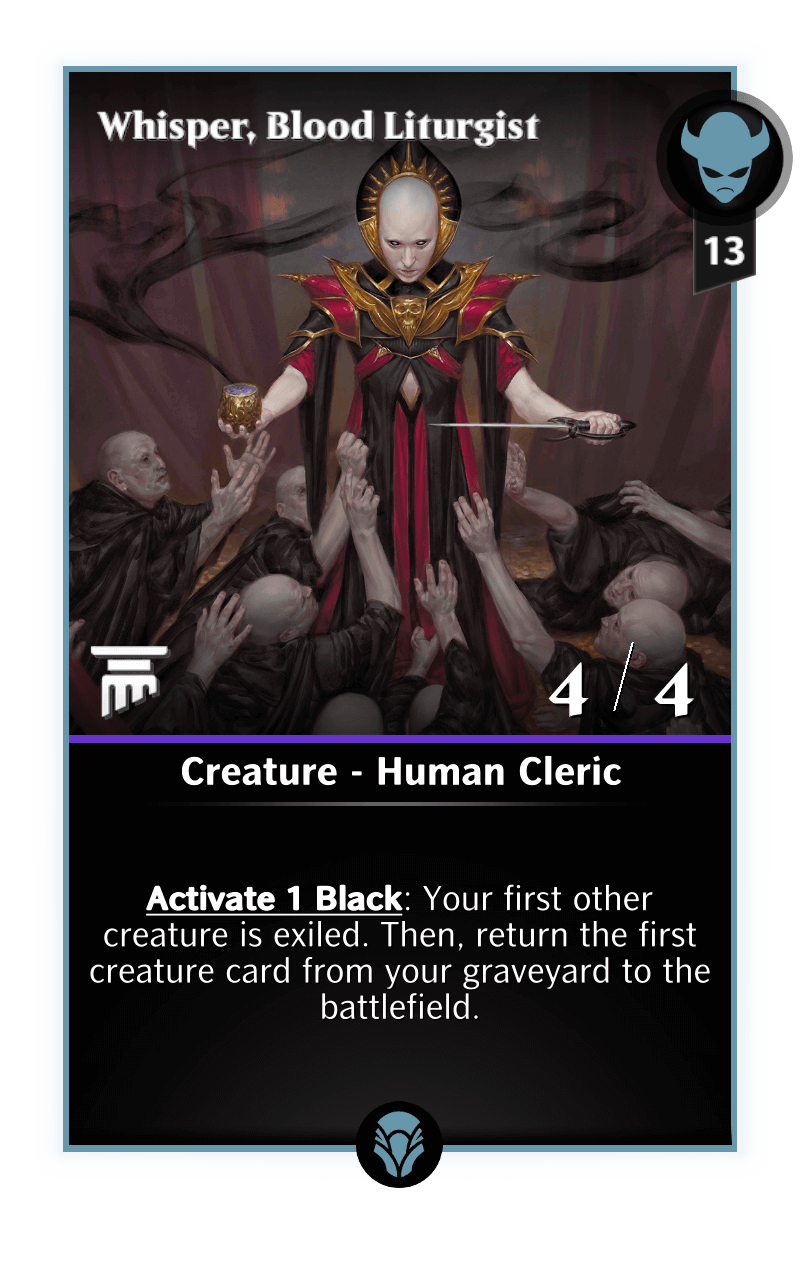 Activate 1 Black: Your first other creature is exiled. Then, return the first creature card from your graveyard to the battlefield.