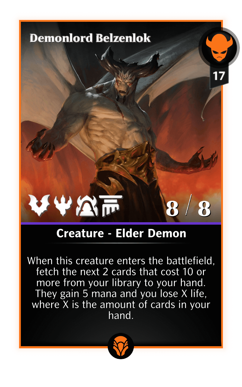 Create 2 Belzenlok’s Cleric Tokens. Create a Belzenlok’s Demon Token.