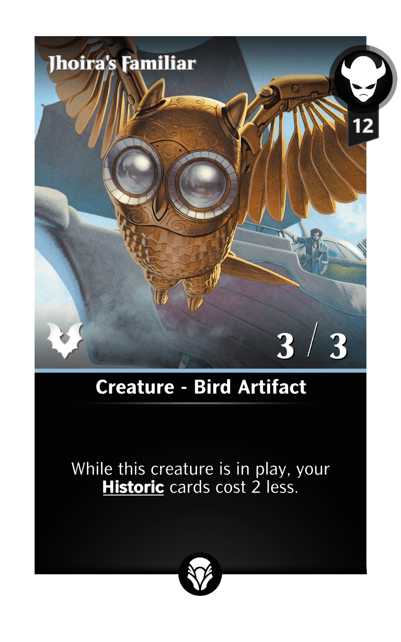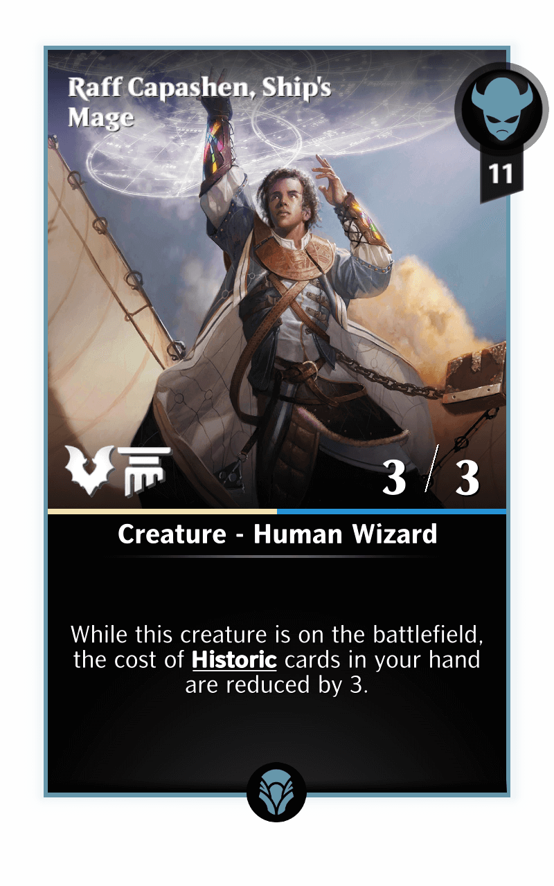 While this creature is on the battlefield, the cost of Historic cards in your hand are reduced by 3.