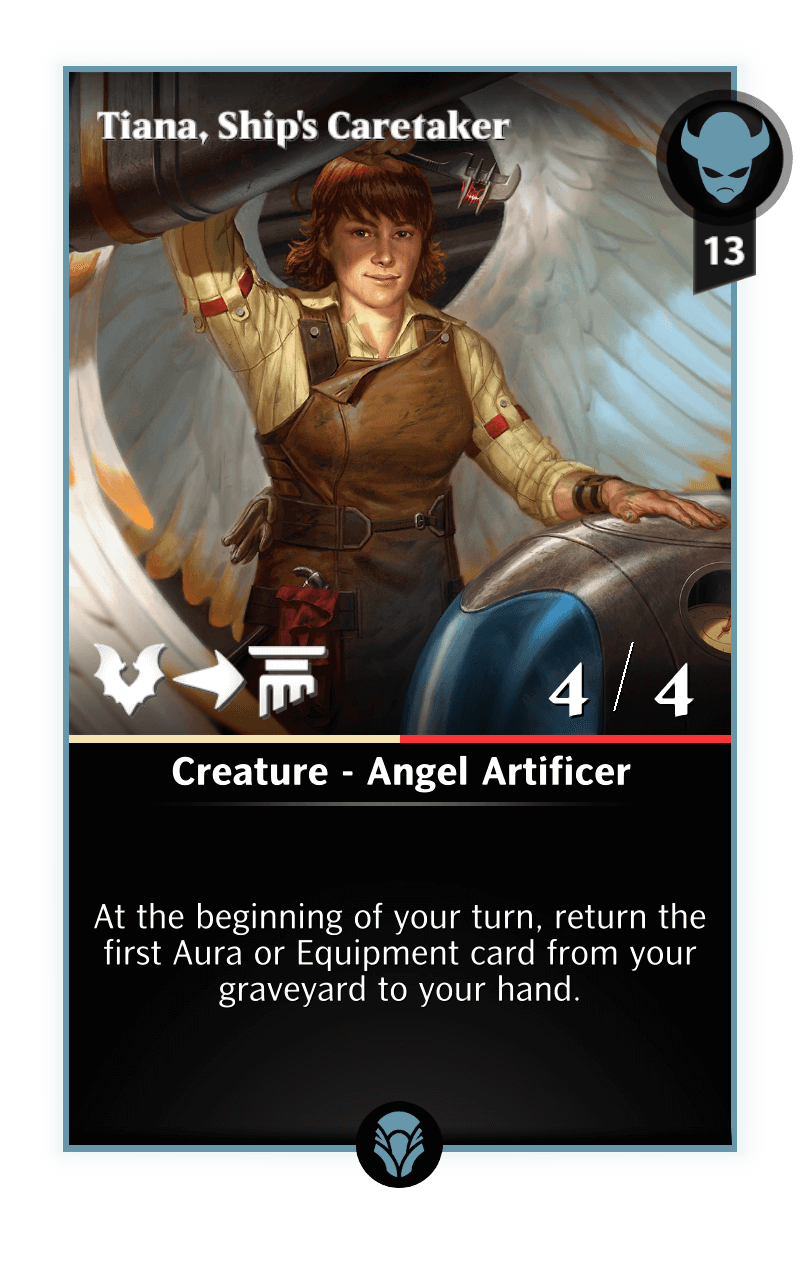 At the beginning of your turn, return the first Aura or Equipment card from your graveyard to your hand.