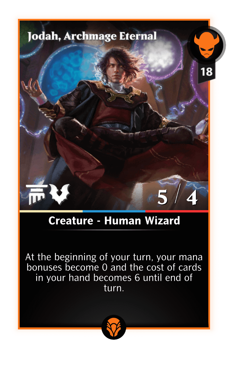 At the beginning of your turn, your mana bonuses become 0 and the cost of cards in your hand becomes 6 until end of turn.