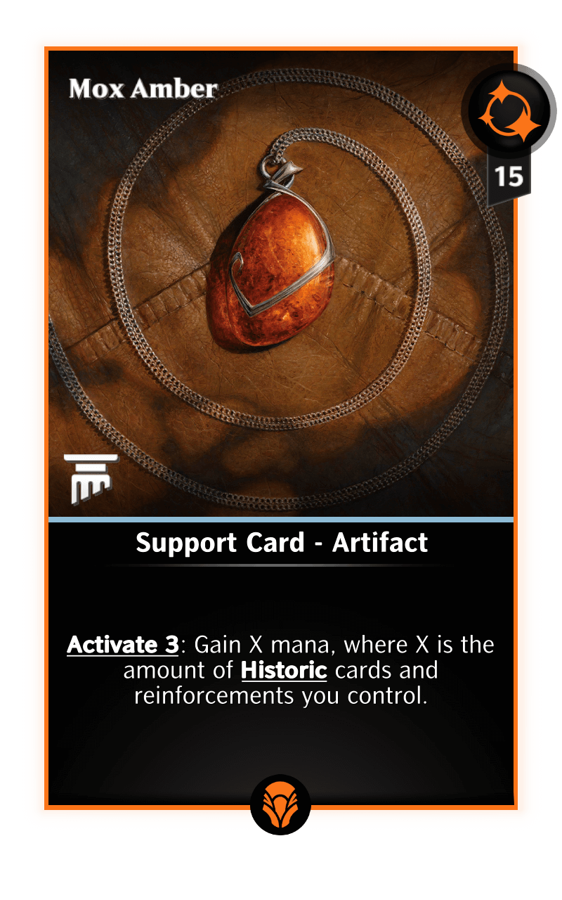 Activate 3: Gain X mana, where X is the amount of Historic cards and reinforcements you control.