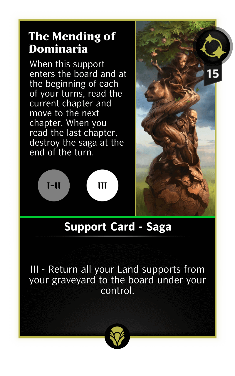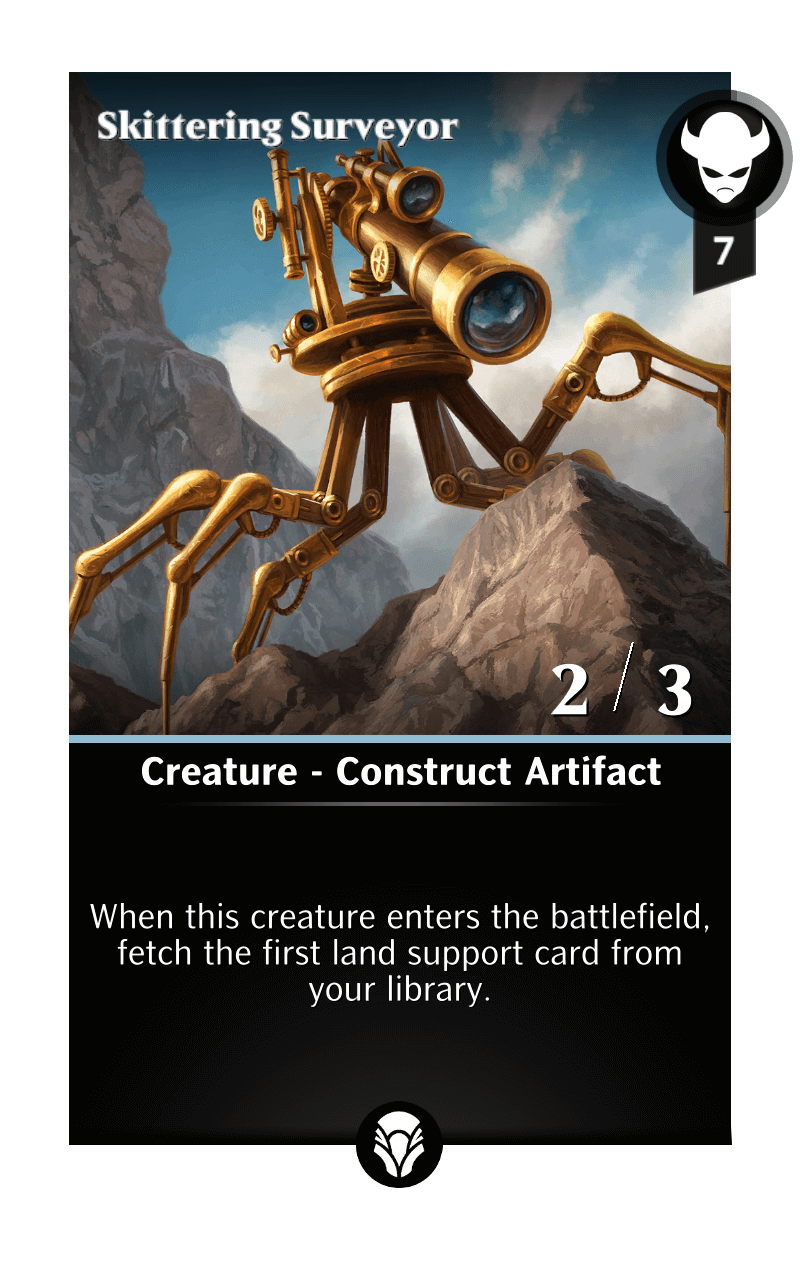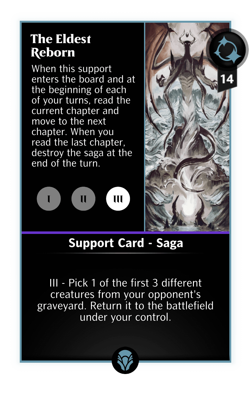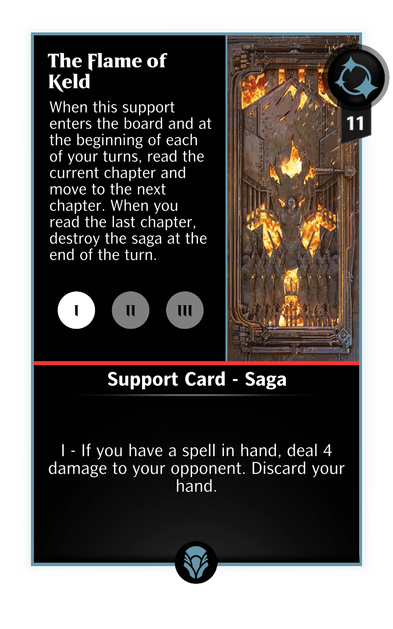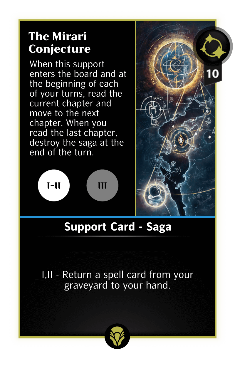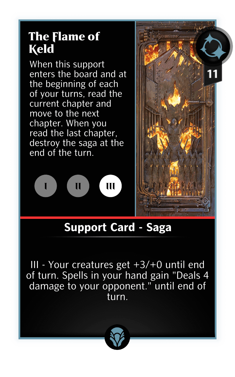 At the beginning of your turn, gain 3 mana. When this support is destroyed, draw a card.