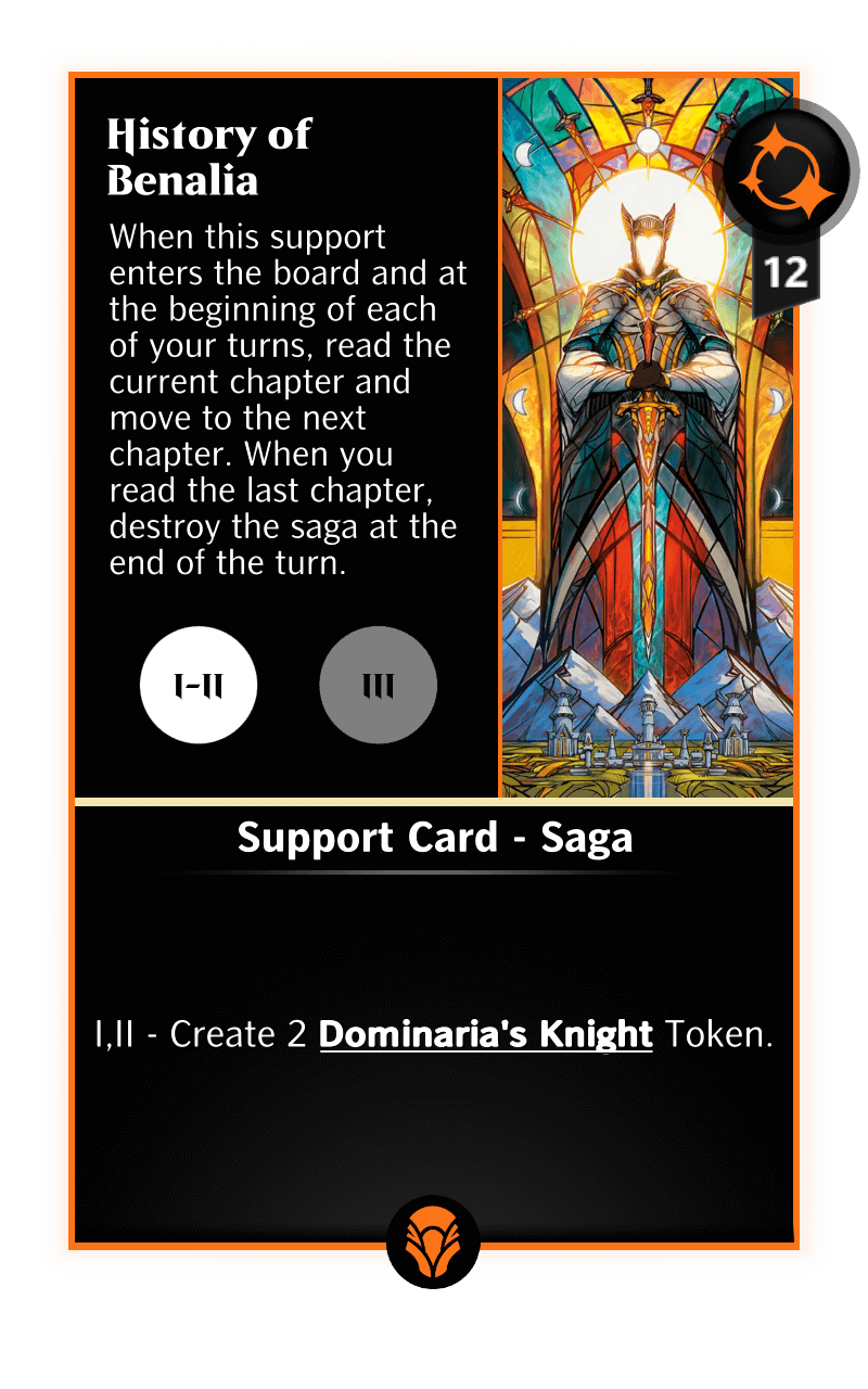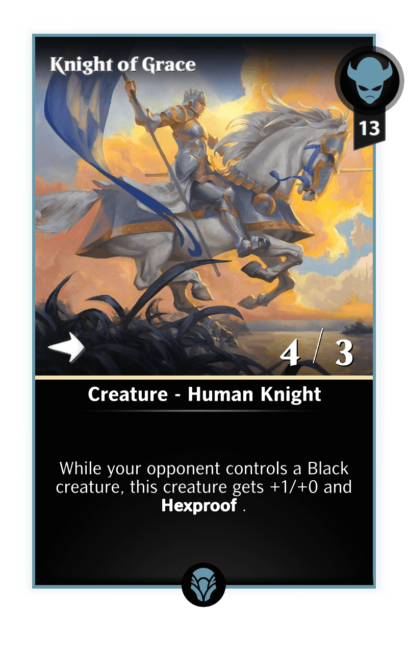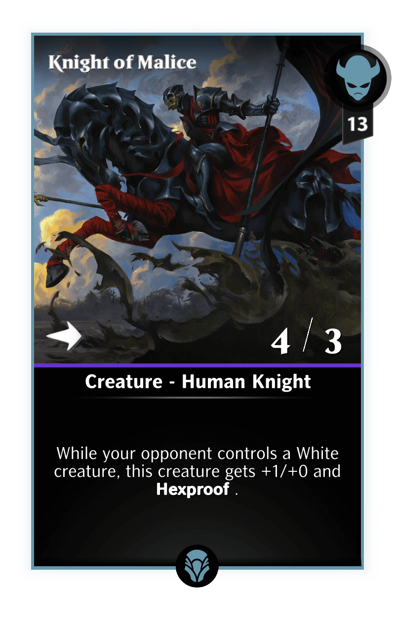 Activate 2 White: Create a Dominaria’s Knight Token. Activate 1 Black: If your opponent controls a creature, Disable the Knight with the greatest power you control for your next 2 turns. Then, destroy your opponent’s first creature.
