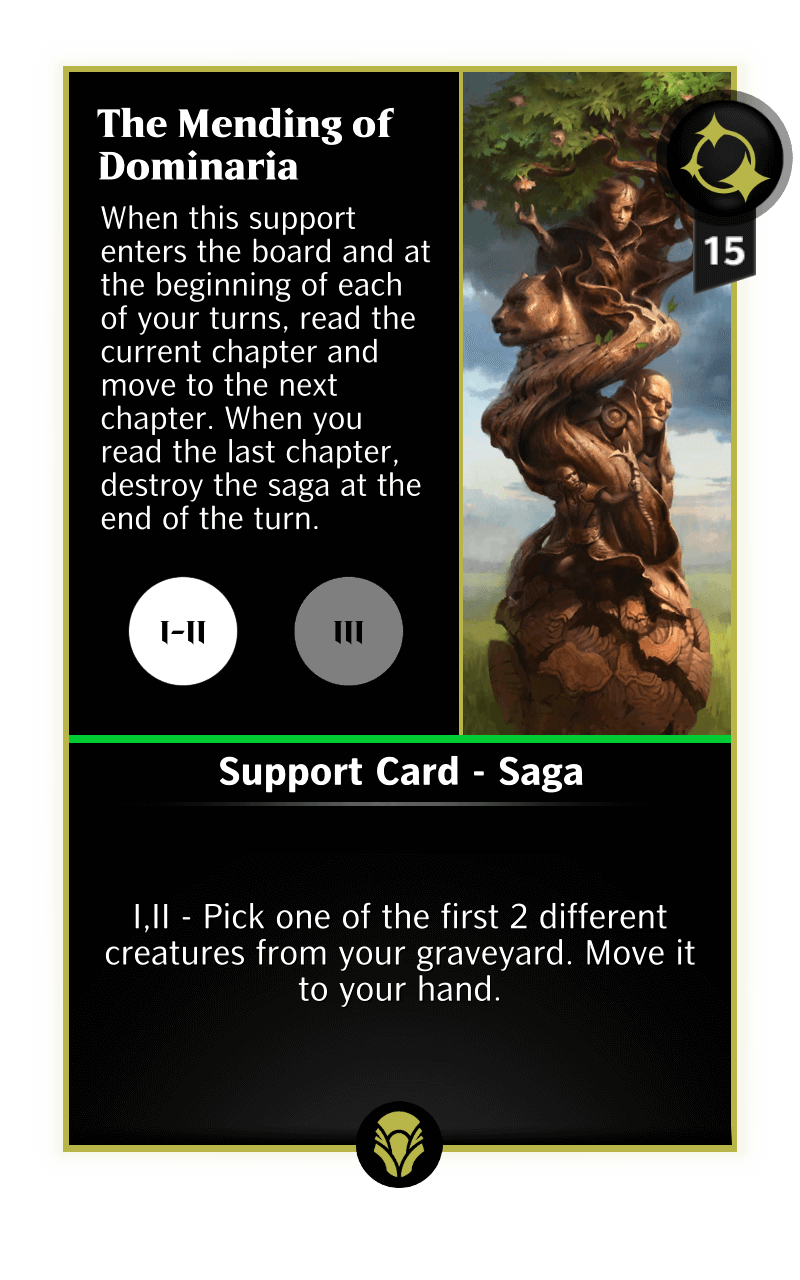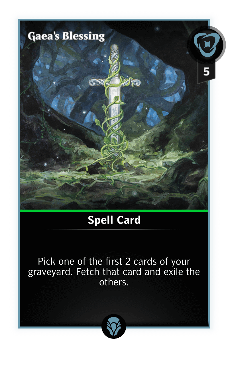 Pick one of the first 2 different creatures from your graveyard. Move it to your hand. Return all your Land supports from your graveyard to the board under your control.