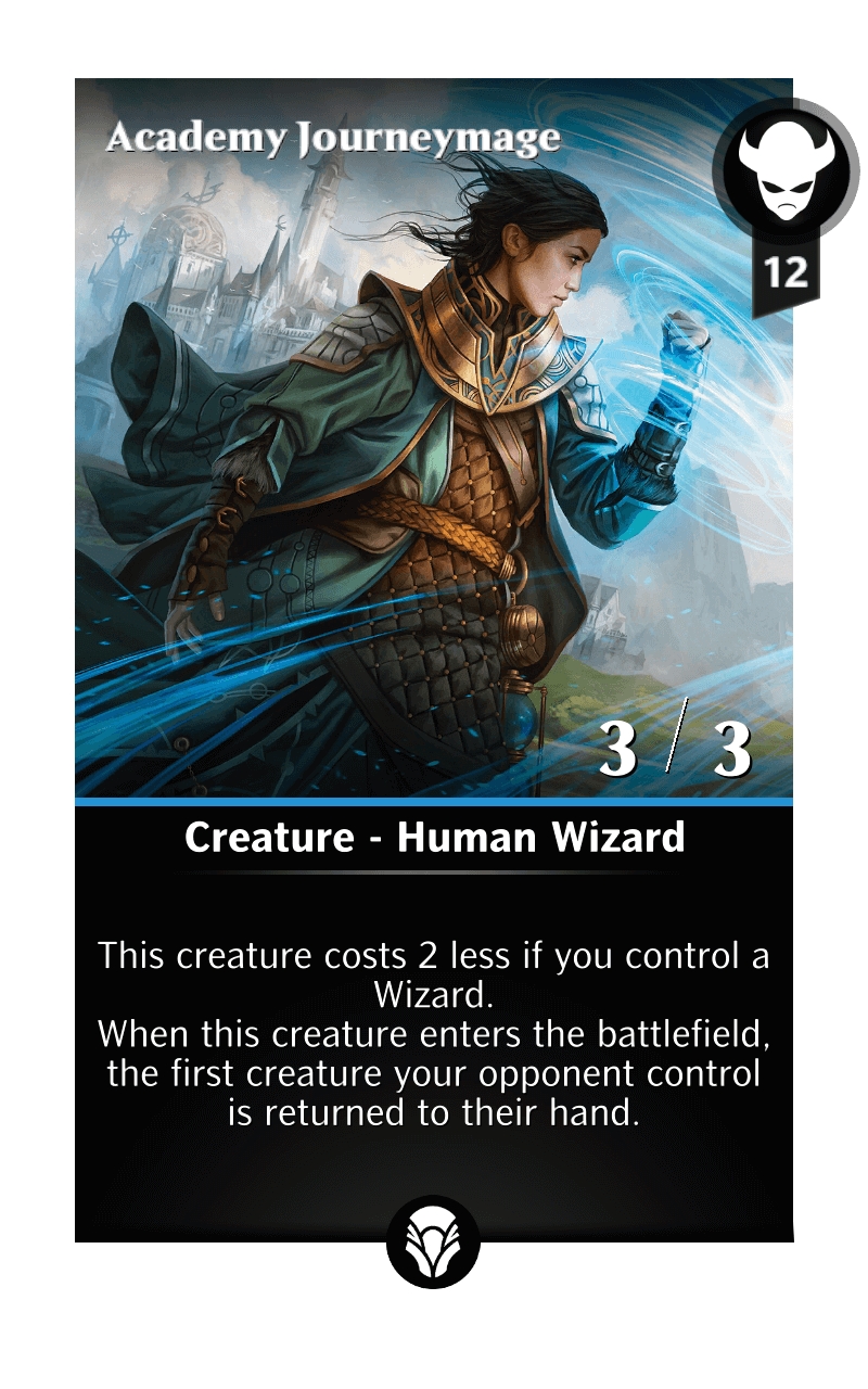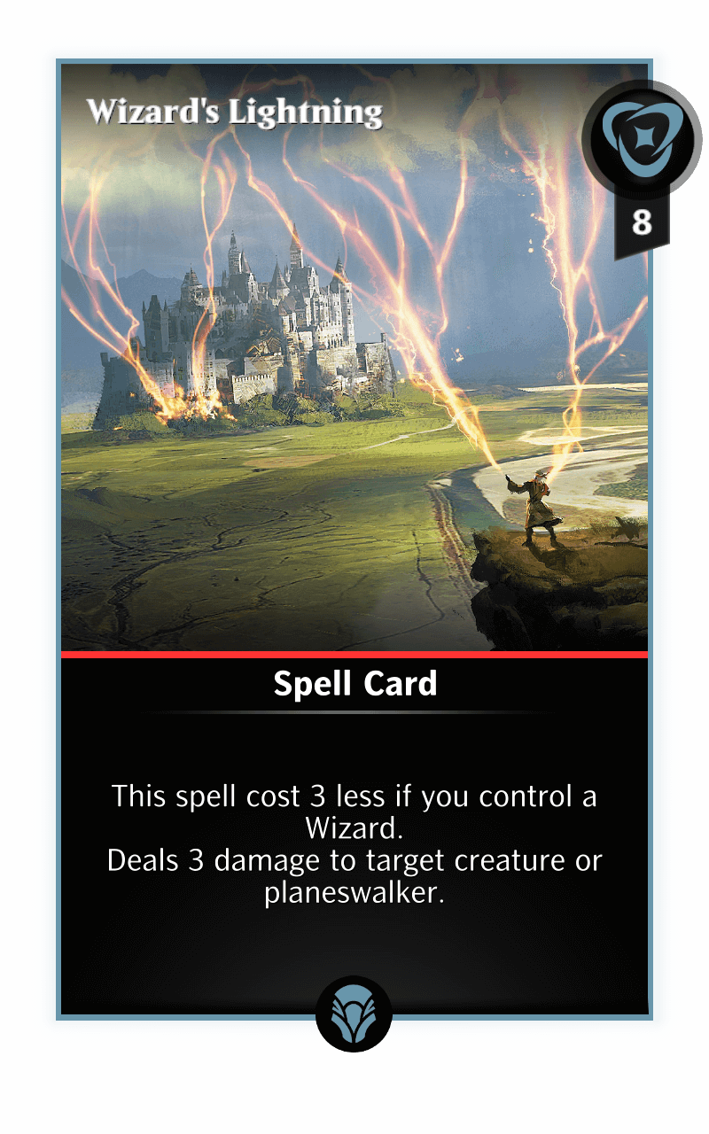 This spell cost 3 less if you control a Wizard. Deals 3 damage to target creature or planeswalker.
