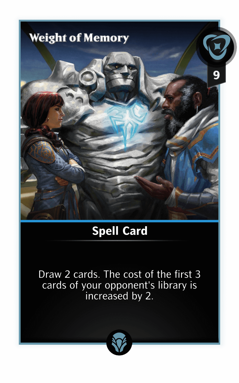Draw 2 cards. The cost of the first 3 cards of your opponent’s library is increased by 2.