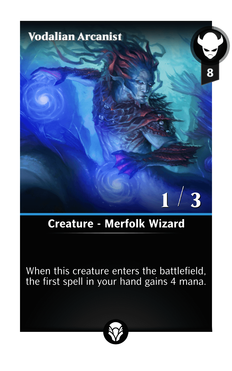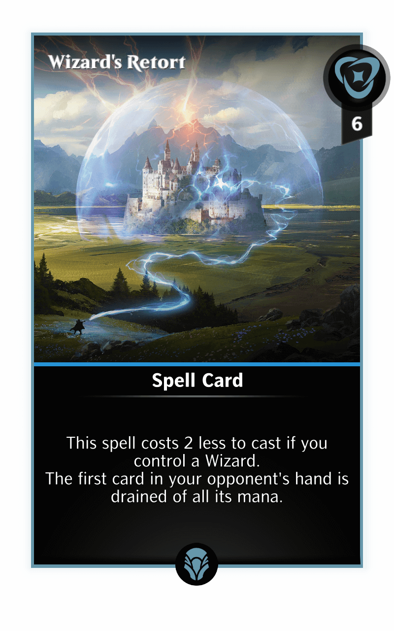 This spell costs 2 less to cast if you control a Wizard. The first card in your opponent’s hand is drained of all its mana.