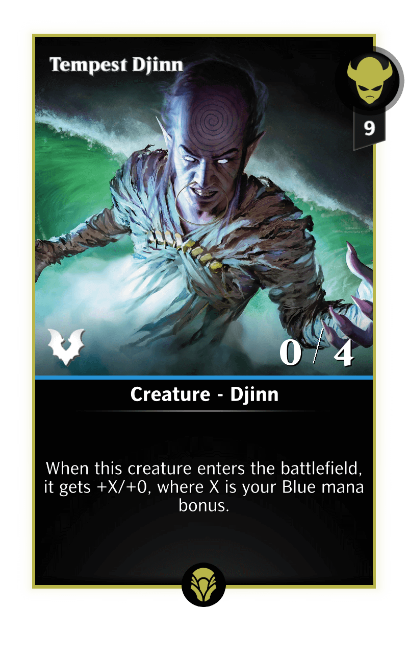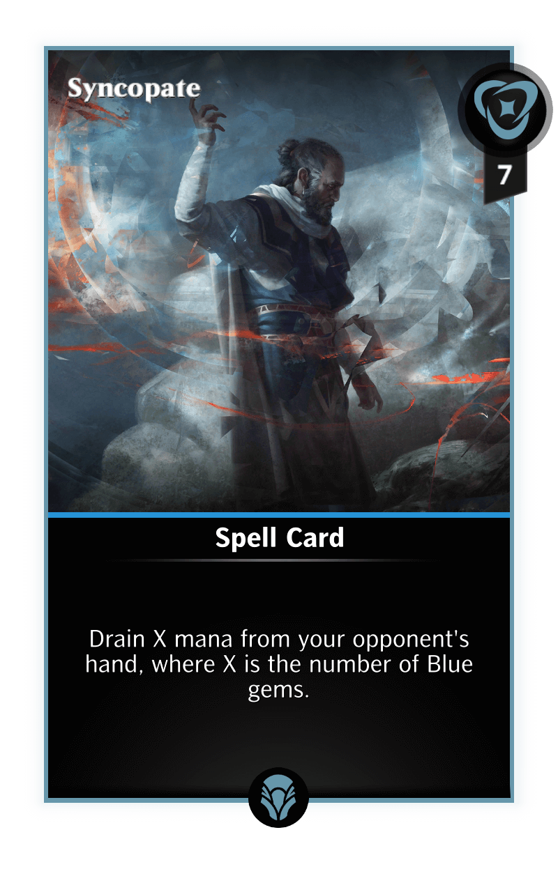 Drain X mana from your opponent’s hand, where X is the number of Blue gems.