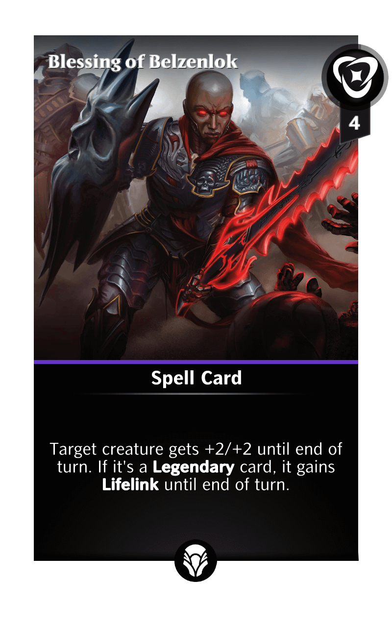 Target creature gets +2/+2 until end of turn. If it’s a Legendary card, it gains Lifelink until end of turn.