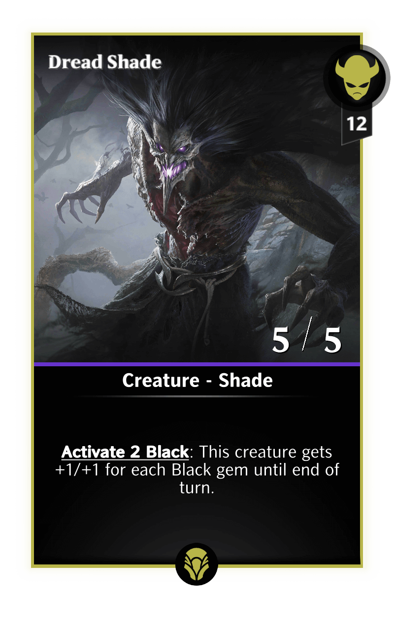 Activate 2 Black: This creature gets +1/+1 for each Black gem until end of turn.