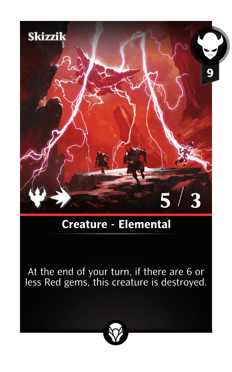 At the end of your turn, if there are 6 or less Red gems, this creature is destroyed.