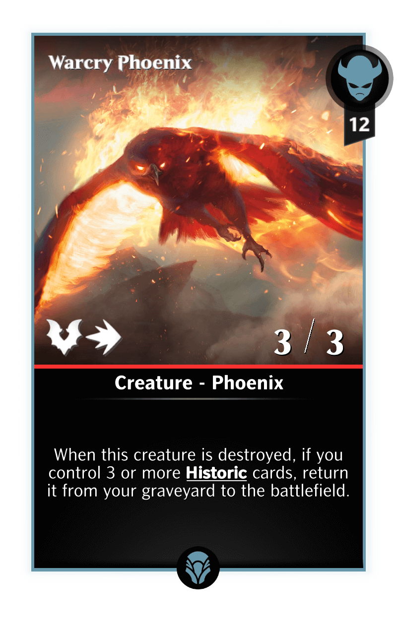 When this creature is destroyed, if you control 3 or more Historic cards, return it from your graveyard to the battlefield.