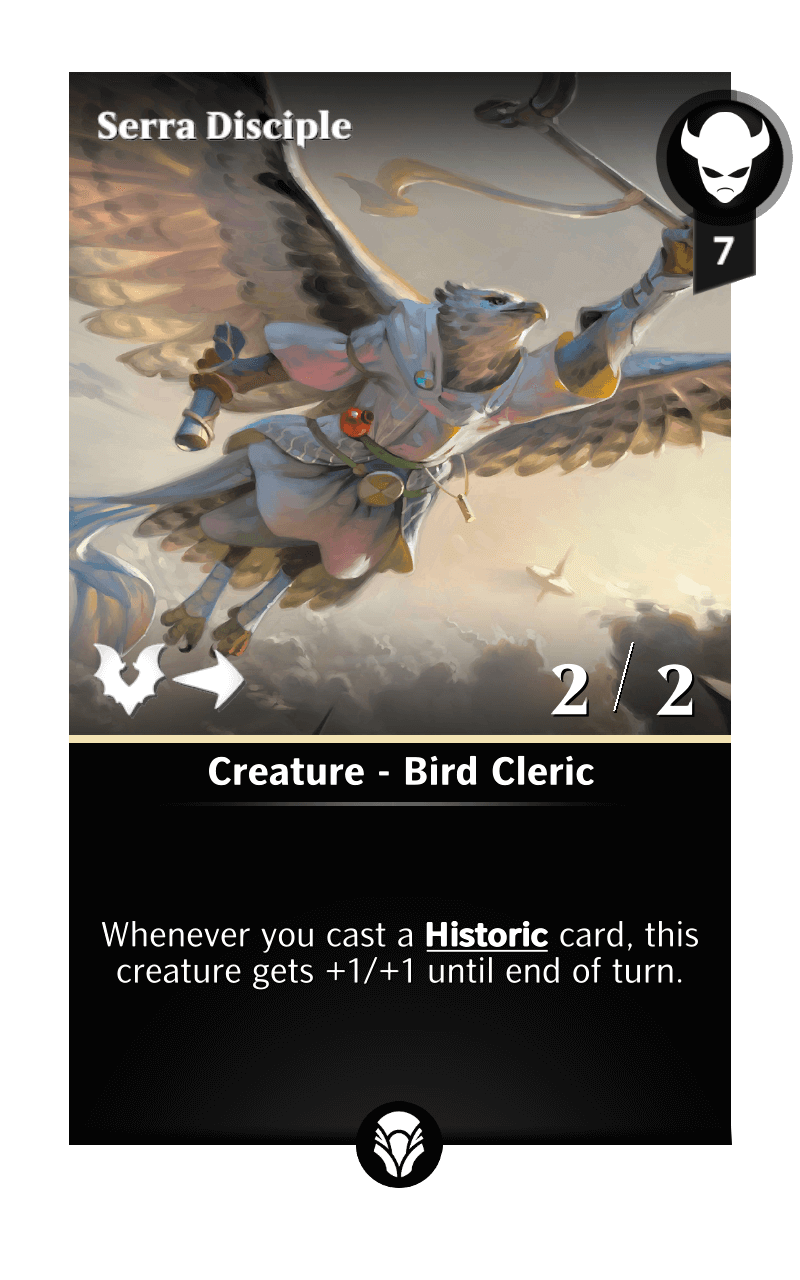 Whenever you cast a Historic card, this creature gets +1/+1 until end of turn.