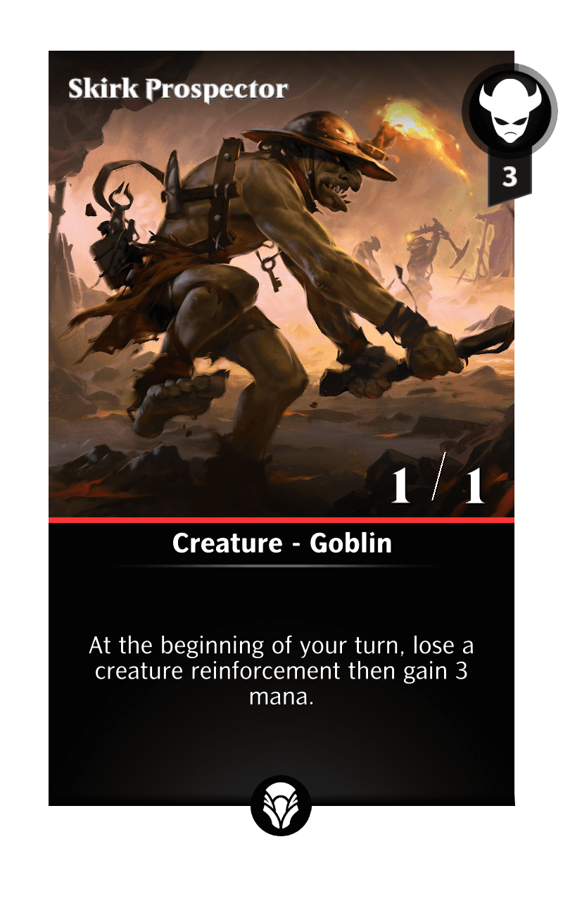 At the beginning of your turn, lose a creature reinforcement then gain 3 mana.