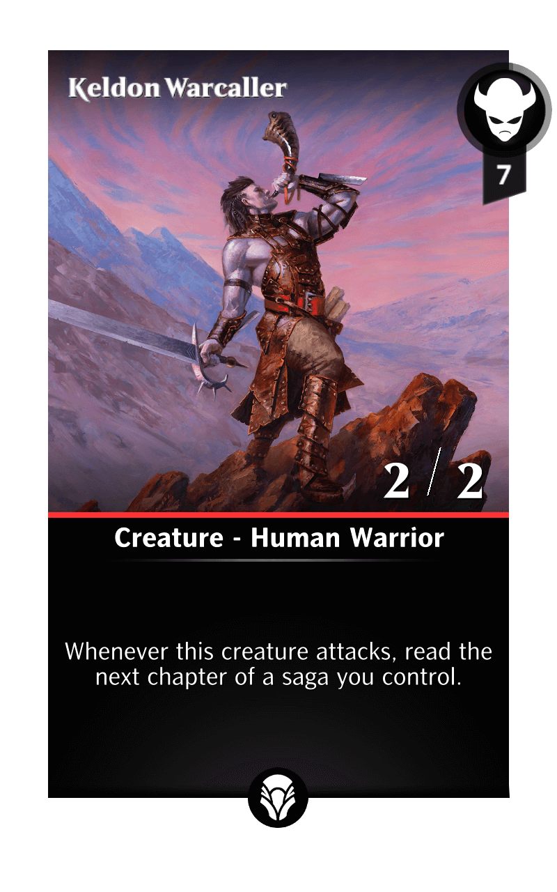 Whenever this creature attacks, read the next chapter of a saga you control.