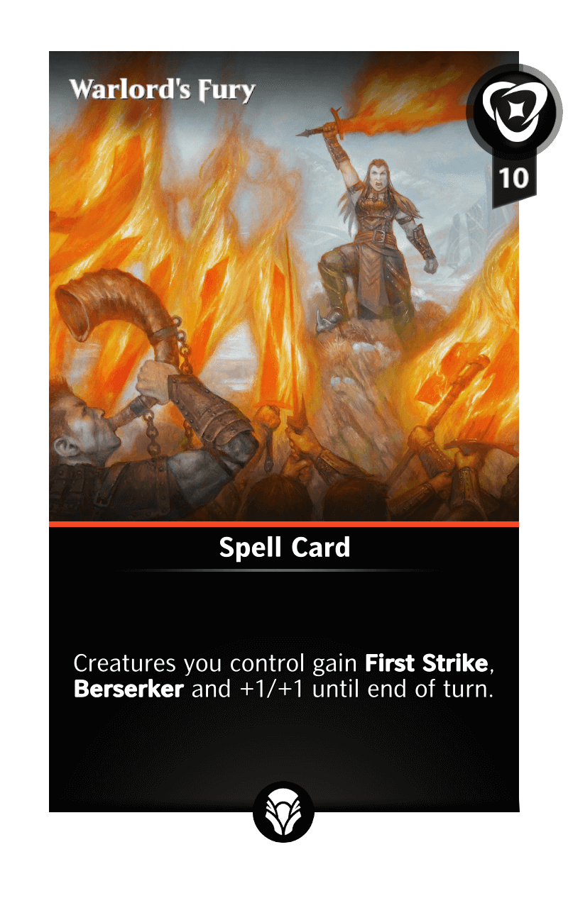 Each creature you control gets +2/+2, Trample, Berserker and First Strike until end of turn.