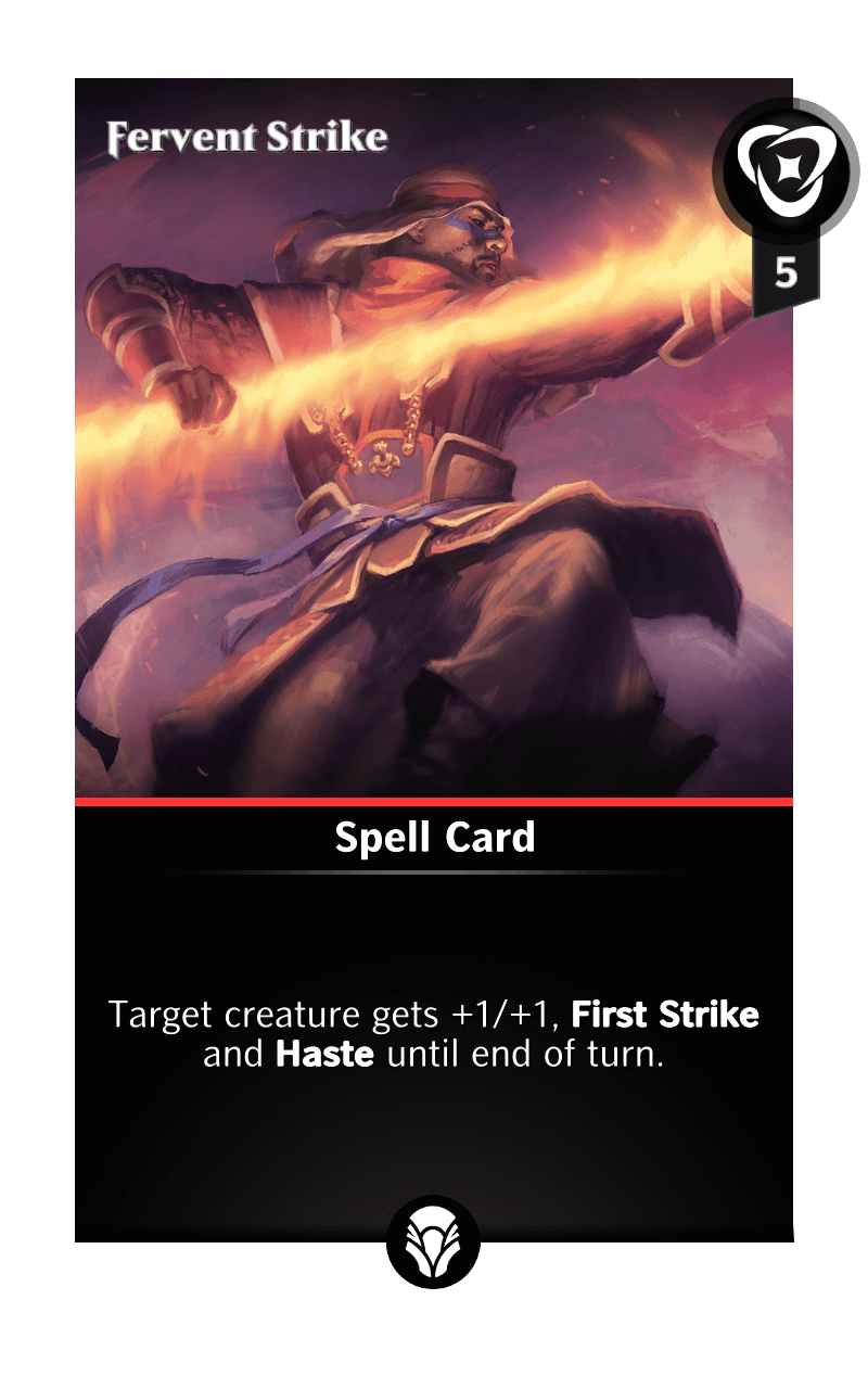 Target creature gets +1/+1, First Strike and Haste until end of turn.