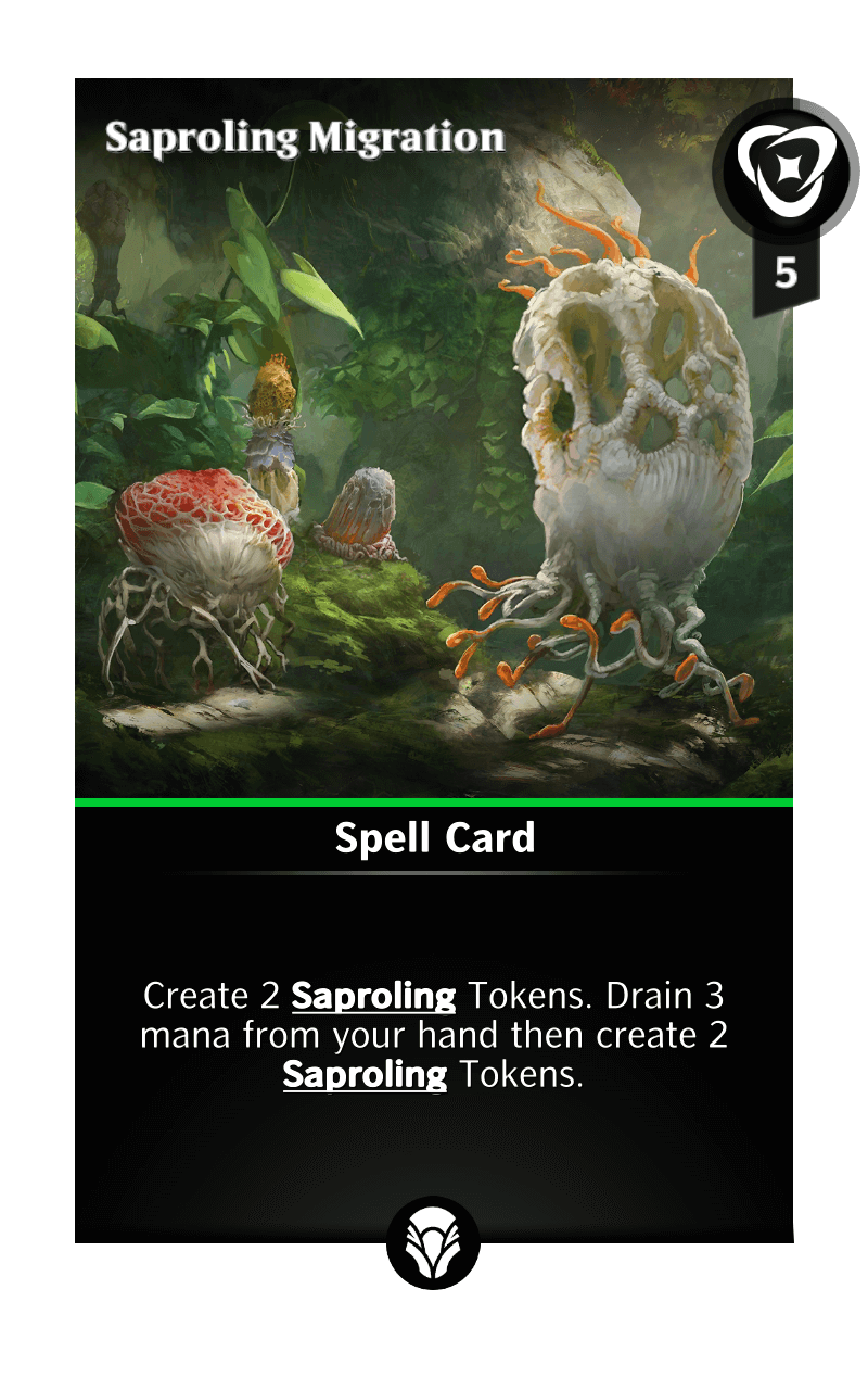 Create 2 Saproling Tokens. Drain 3 mana from your hand then create 2 Saproling Tokens.