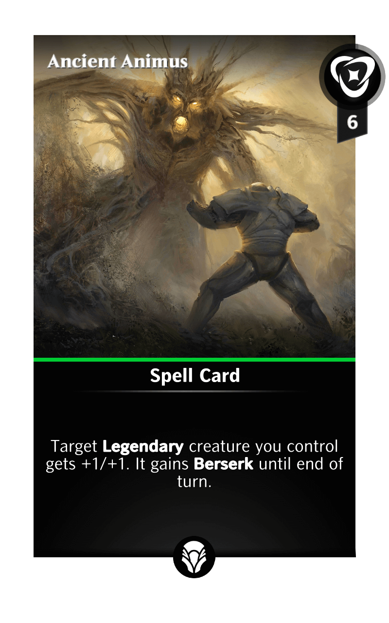 Your Green mana bonus is increased by 1 for each creature you control until the end of your next turn. Each creature you control gets +2/+2, Trample, Berserker and First Strike until end of turn.