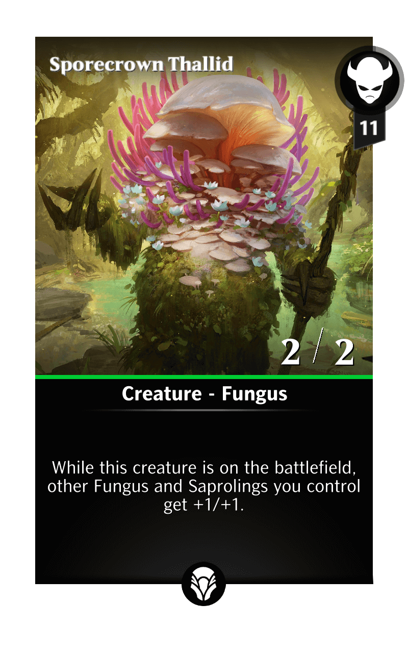 While this creature is on the battlefield, other Fungus and Saprolings you control get +1/+1.