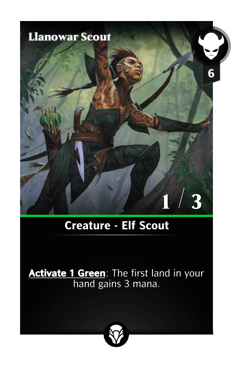 Activate 1 Green: The first land in your hand gains 3 mana.
