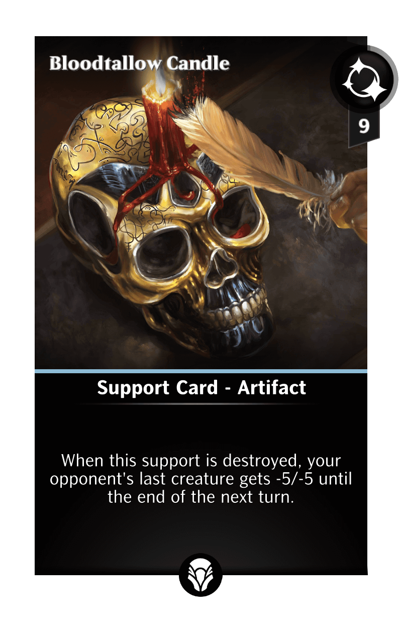 When this support is destroyed, your opponent’s last creature gets -5/-5 until the end of the next turn.