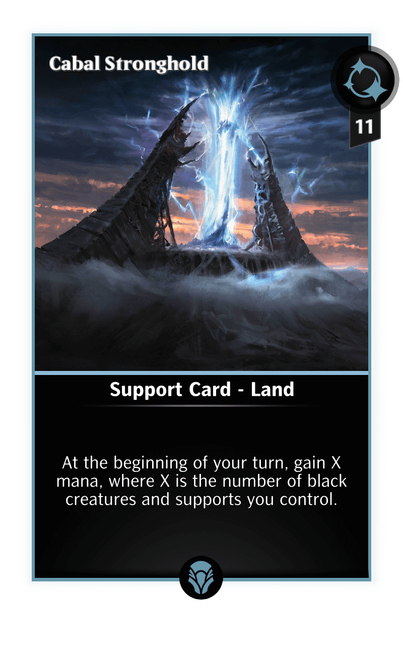 At the beginning of your turn, gain X mana, where X is the number of black creatures and supports you control.
