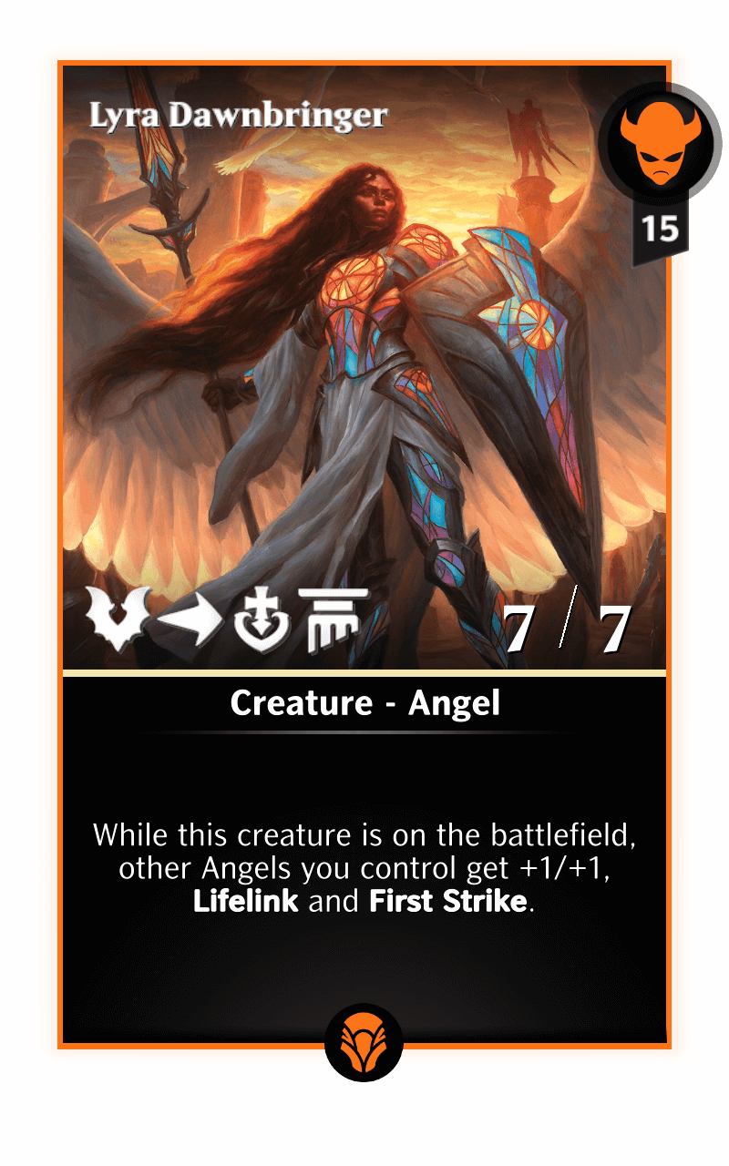 While this creature is on the battlefield, other Angels you control get +1/+1, Lifelink and First Strike.