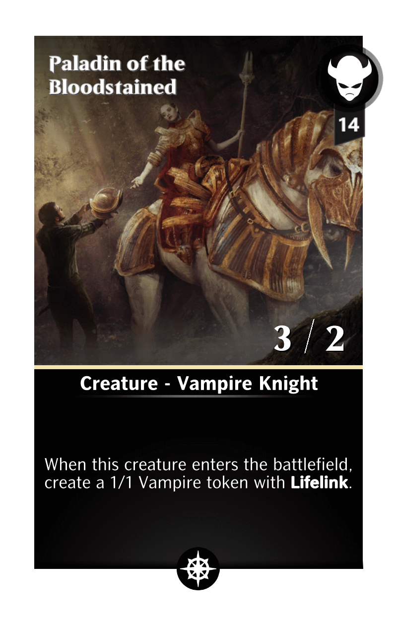 Create 2 1/1 White Vampire creature tokens with Lifelink.