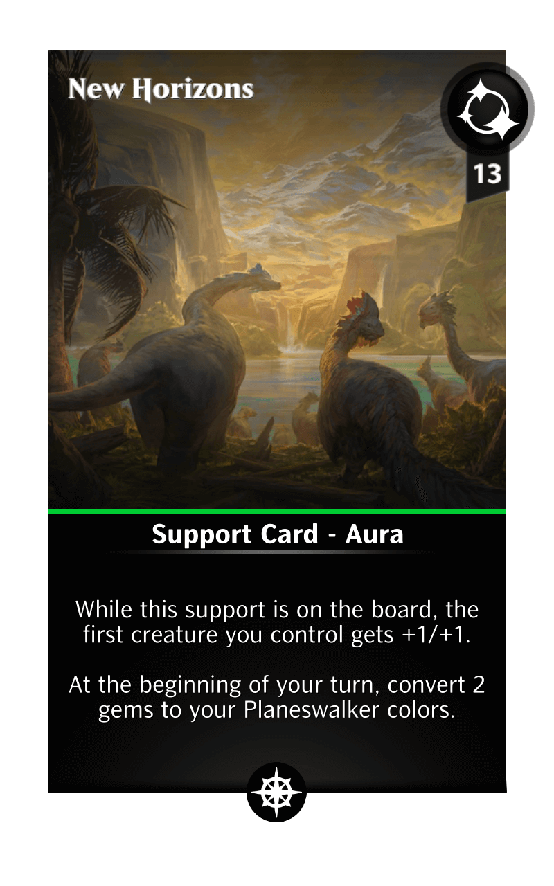 While this support is on the board, the first creature you control gets +1/+1.At the beginning of your turn, convert 2 gems to your planeswalker colors.