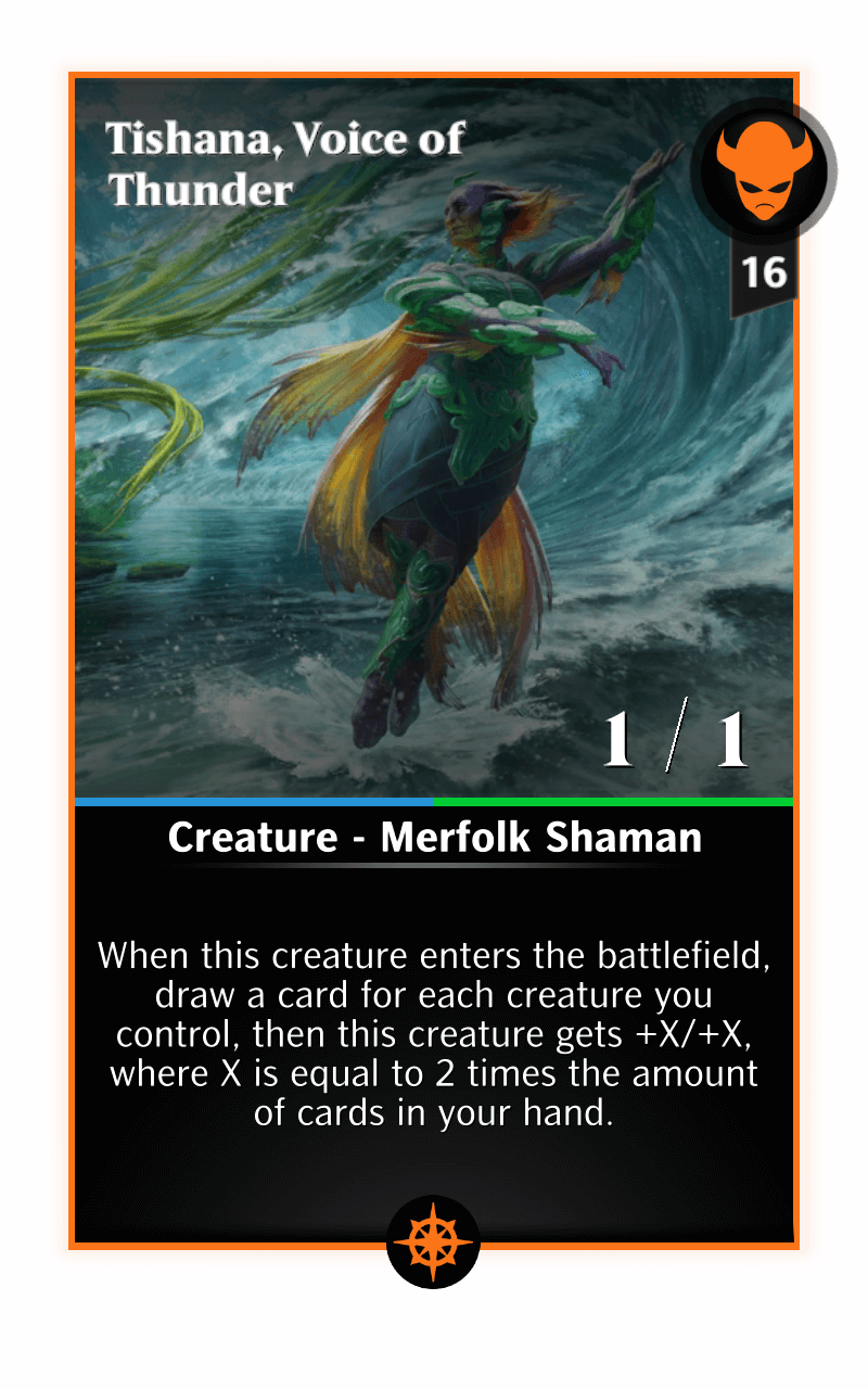 Draw 3 cards.If you have 6 cards in your hand, each card in your hand gains 3 mana.