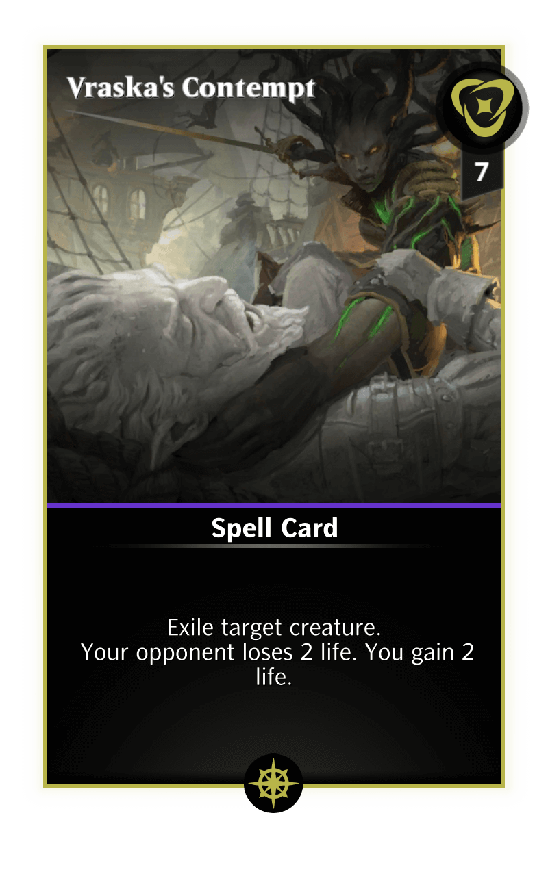 Exile target creature. Your opponent loses 2 life. You gain 2 life.