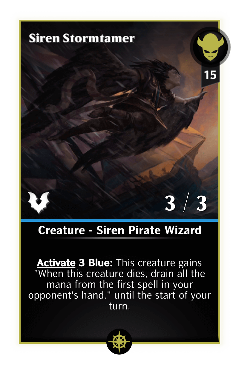 Activate 3 Blue: This creature gains “When this creature dies, drain all the mana from the first spell in your opponent’s hand.” until the start of your turn.
