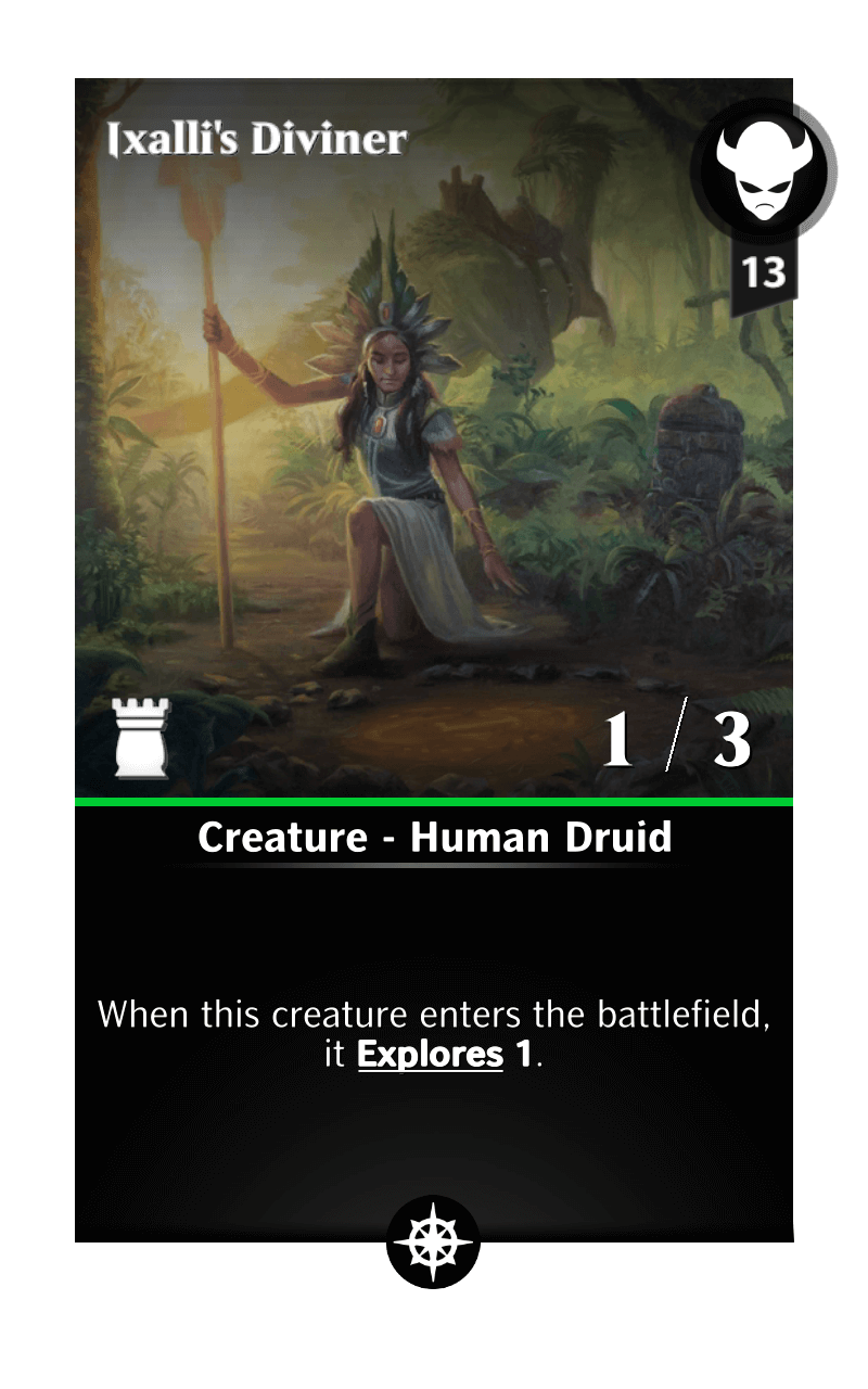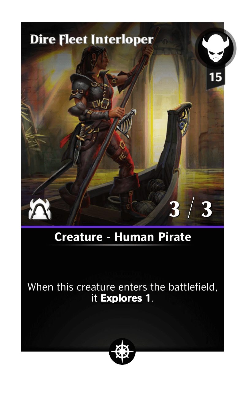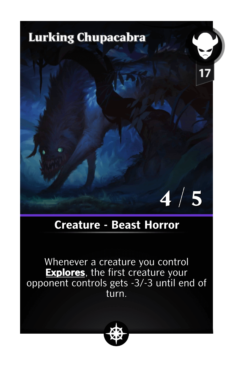 Activate 3 Black: Exile the last 2 cards from your opponent’s graveyard. Then this creature Explores 1.