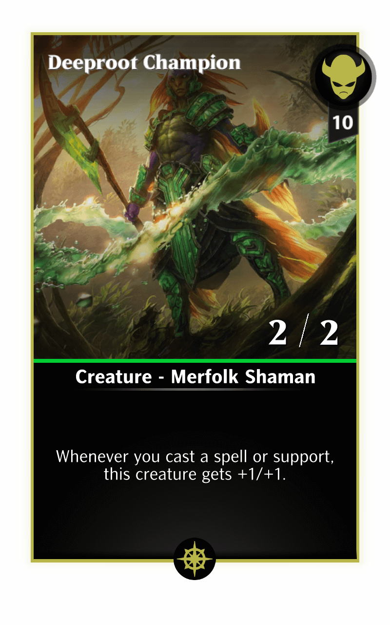 Whenever a nontoken Merfolk creature enters the battlefield under your control, create a 1/1 Merfolk token with hexproof and this support loses 1 shield.