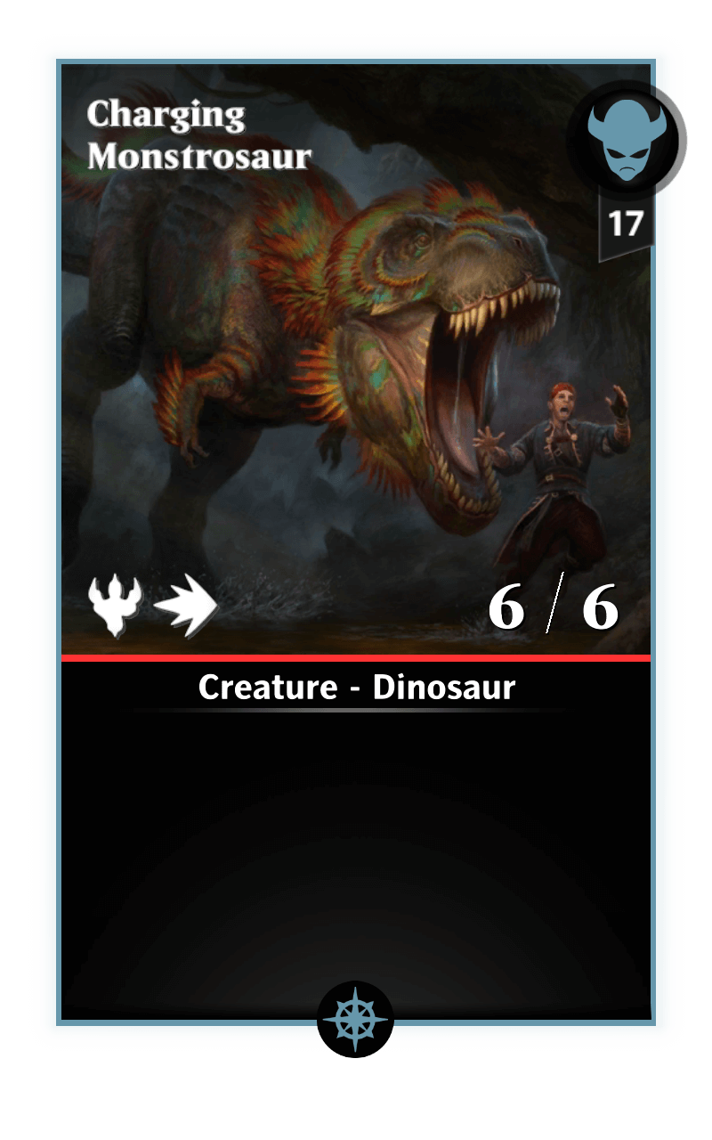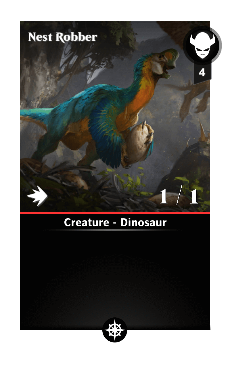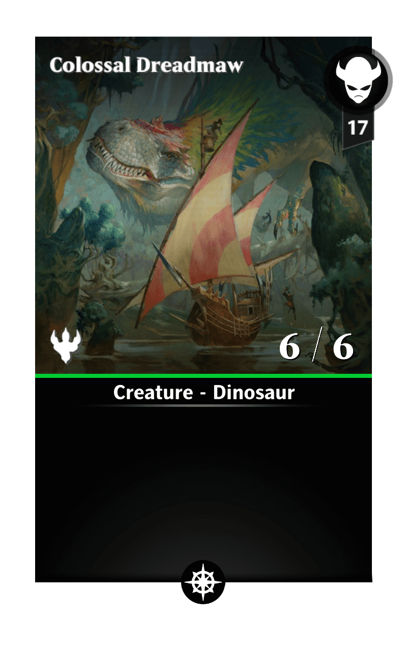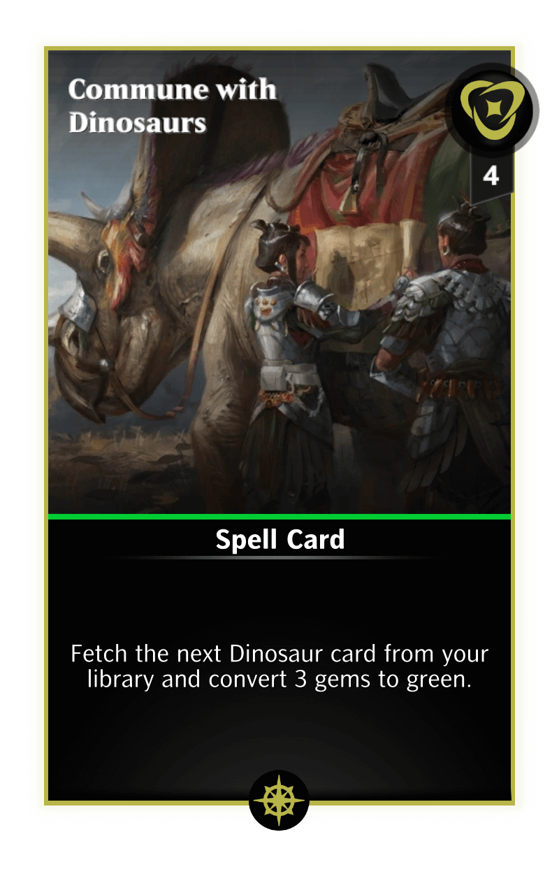 Fetch the next Dinosaur card from your library and convert 3 gems to green.