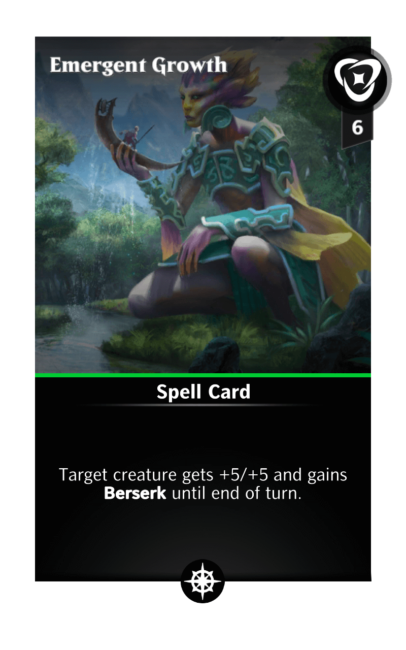 Target creature gets +5/+5 and gains Berserk until end of turn.