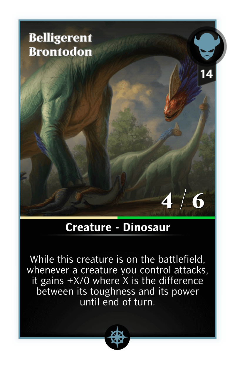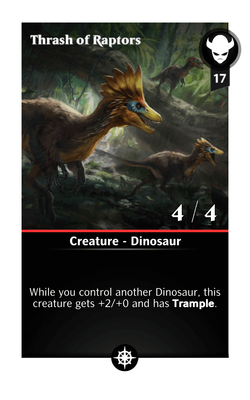 While you control another Dinosaur, this creature gets +X/+0 and has Trample.