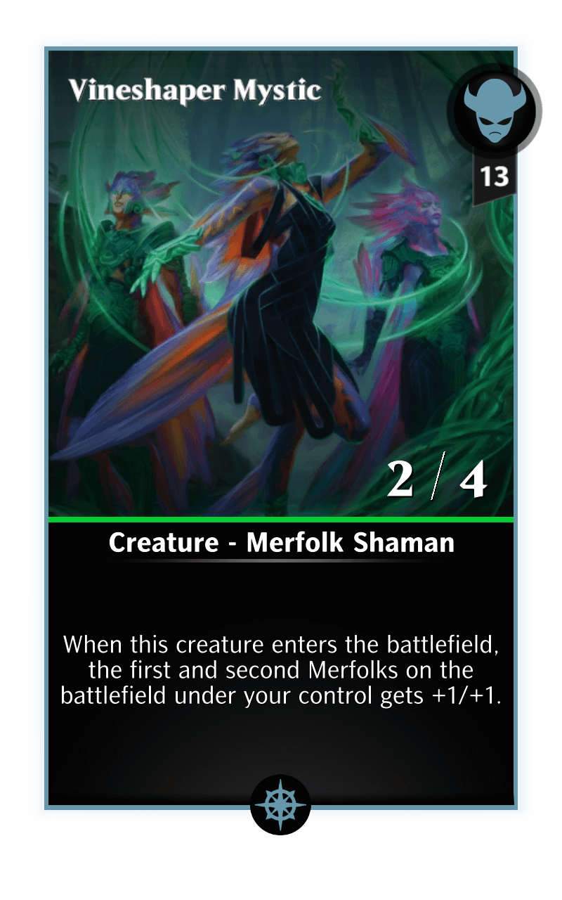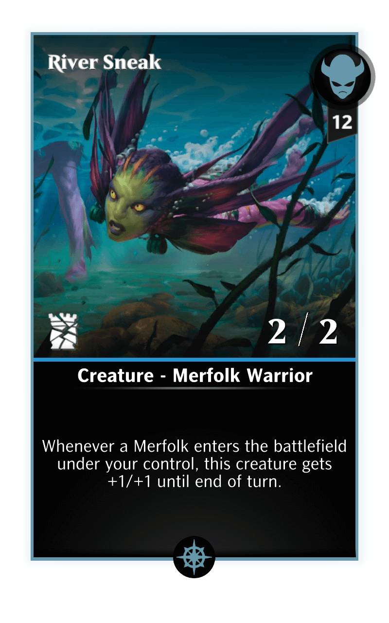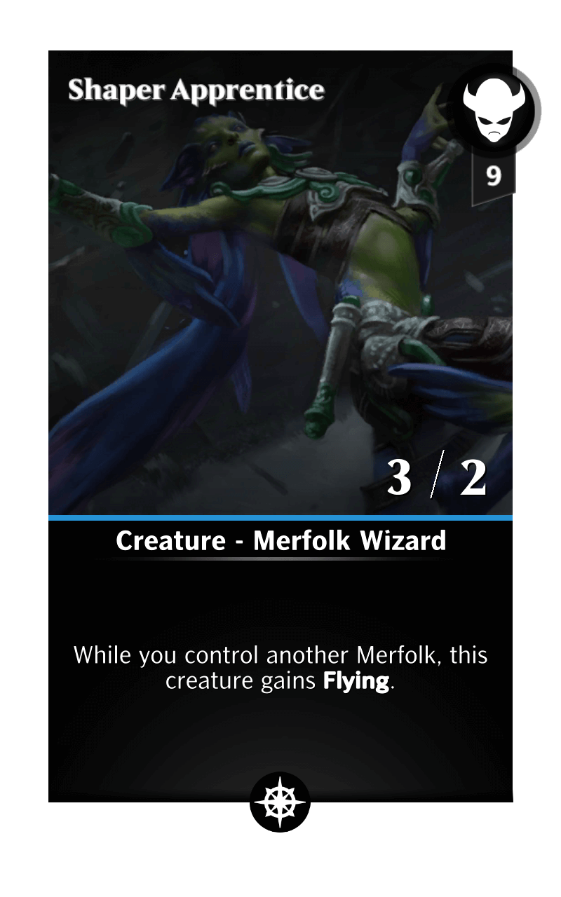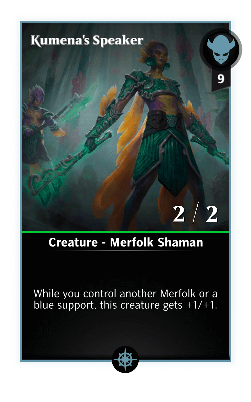 While you control another Merfolk or a blue support, this creature gets +1/+1.