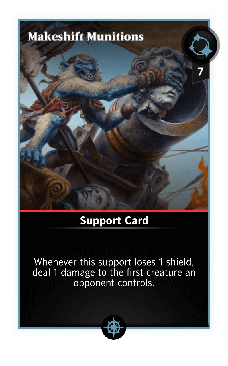 Whenever this support loses 1 shield, deal 1 damage to the first creature an opponent controls.