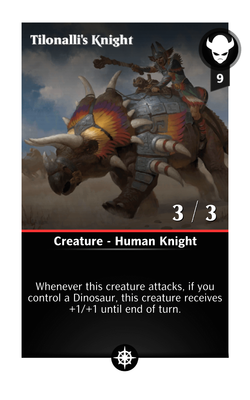 Whenever this creature attacks, if you control a Dinosaur, this creature receives +1/+1 until end of turn.