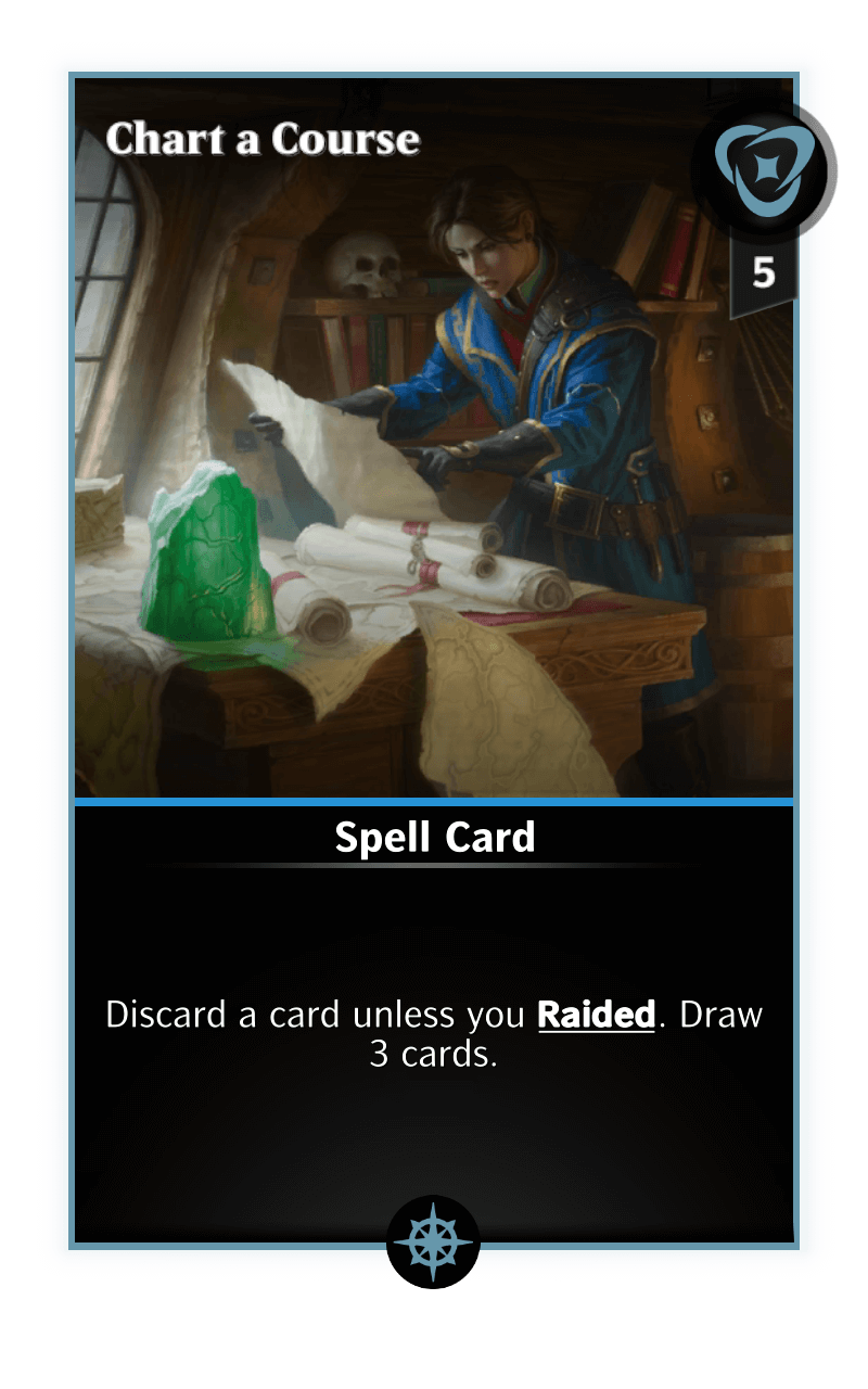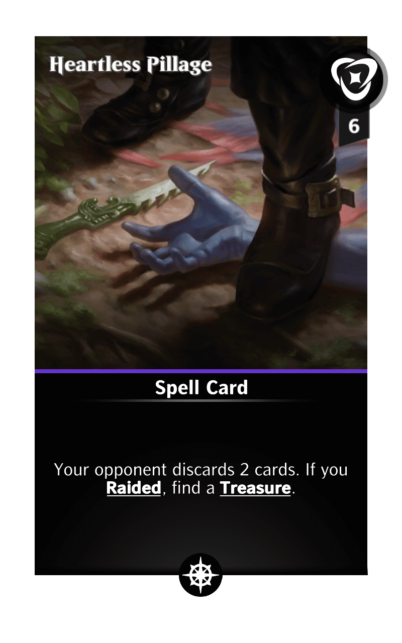 Your opponent discards 2 cards. If you Raided, find a Treasure.