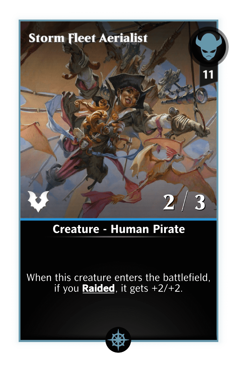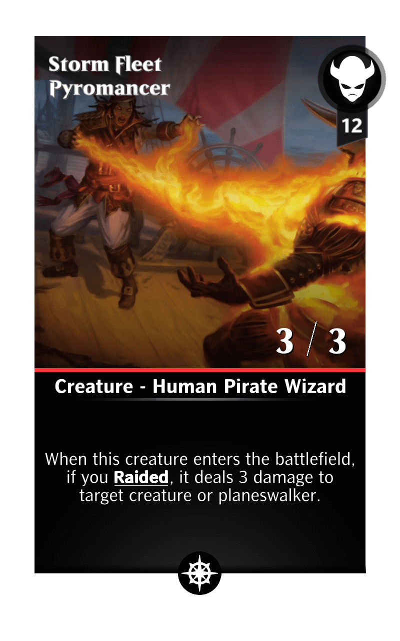 When this creature enters the battlefield, if you Raided, it deals 3 damage to target creature or planeswalker.