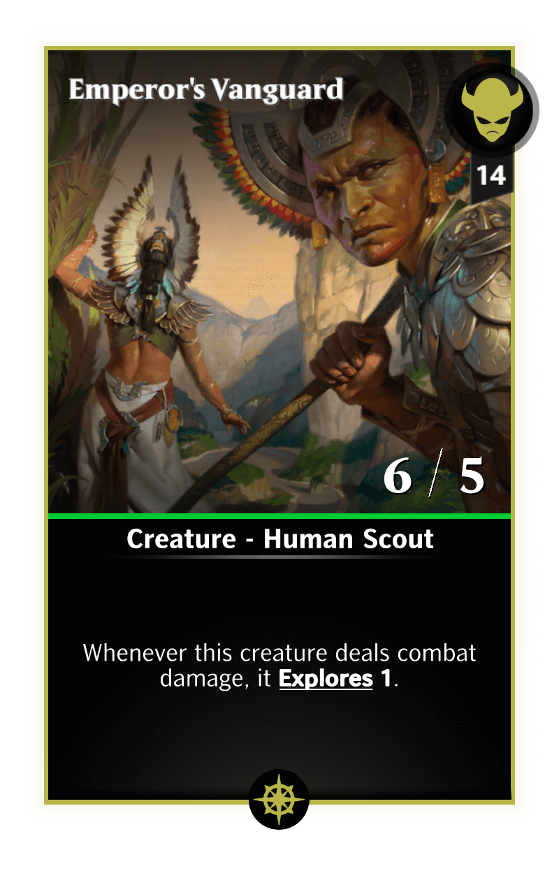 “Whenever this creature deals damage to a creature, it Explores 2.