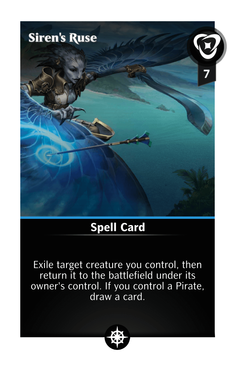 Exile target creature you control, then return it to the battlefield under its owner’s control. If you control a Pirate, draw a card.