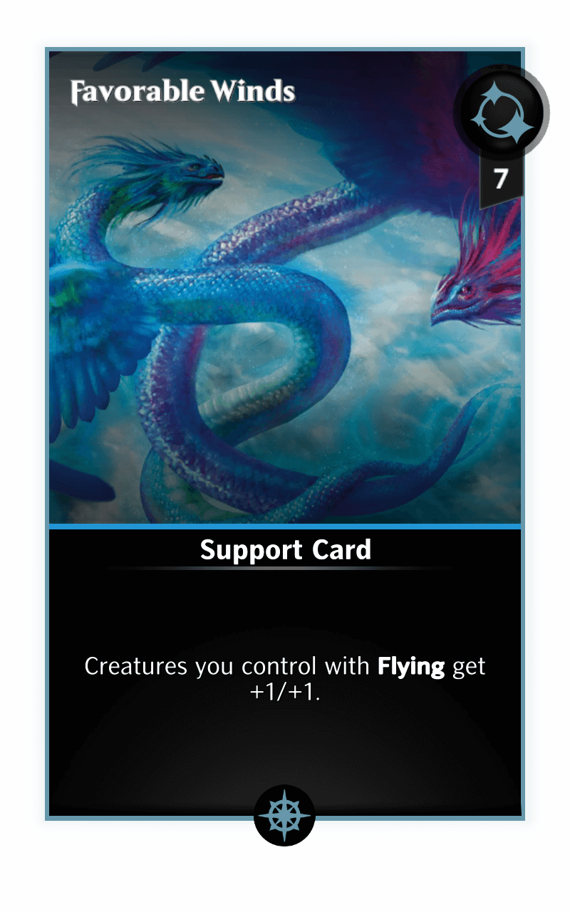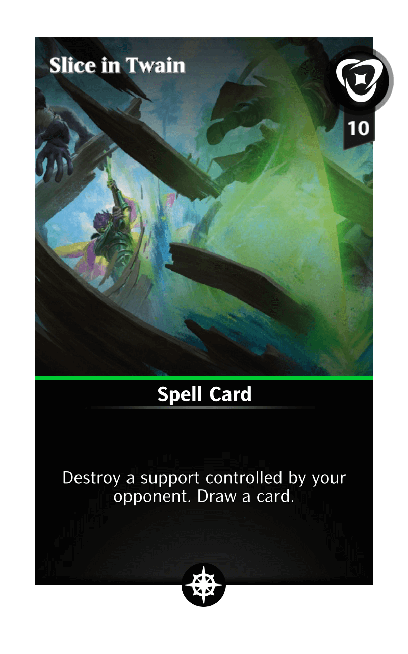 Return all creatures and nonland supports your opponent controls to their owner’s hands and increase their cost by 2. If there is no room in your opponent’s hand, destroy them.